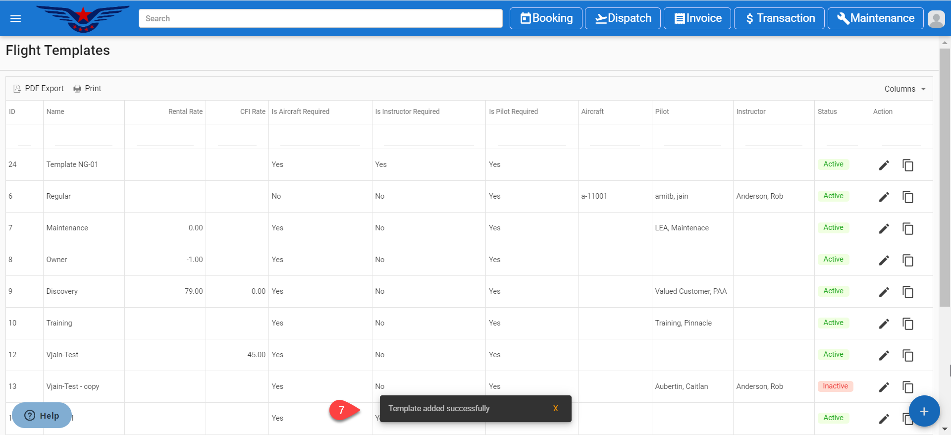 - Click on the X to close the Add Flight Template pop up.