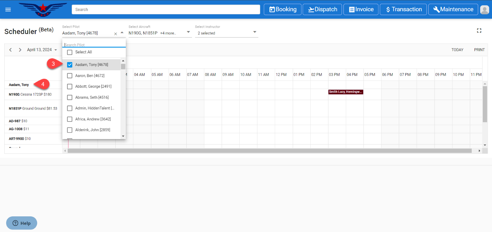 - It will display the selected pilot on the scheduler.