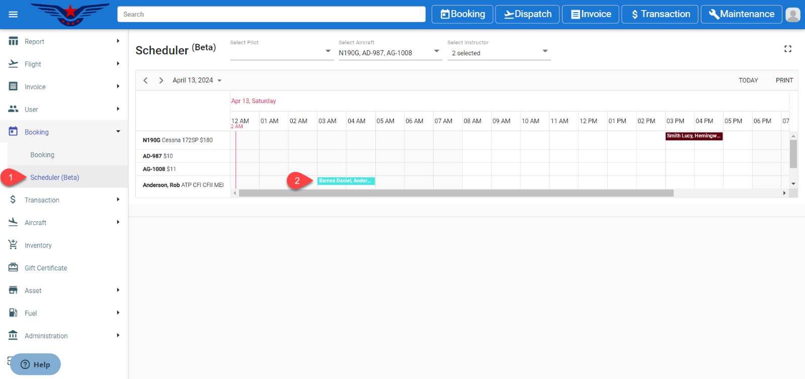 - Select the Aircraft. It will display the selected aircraft on the scheduler.