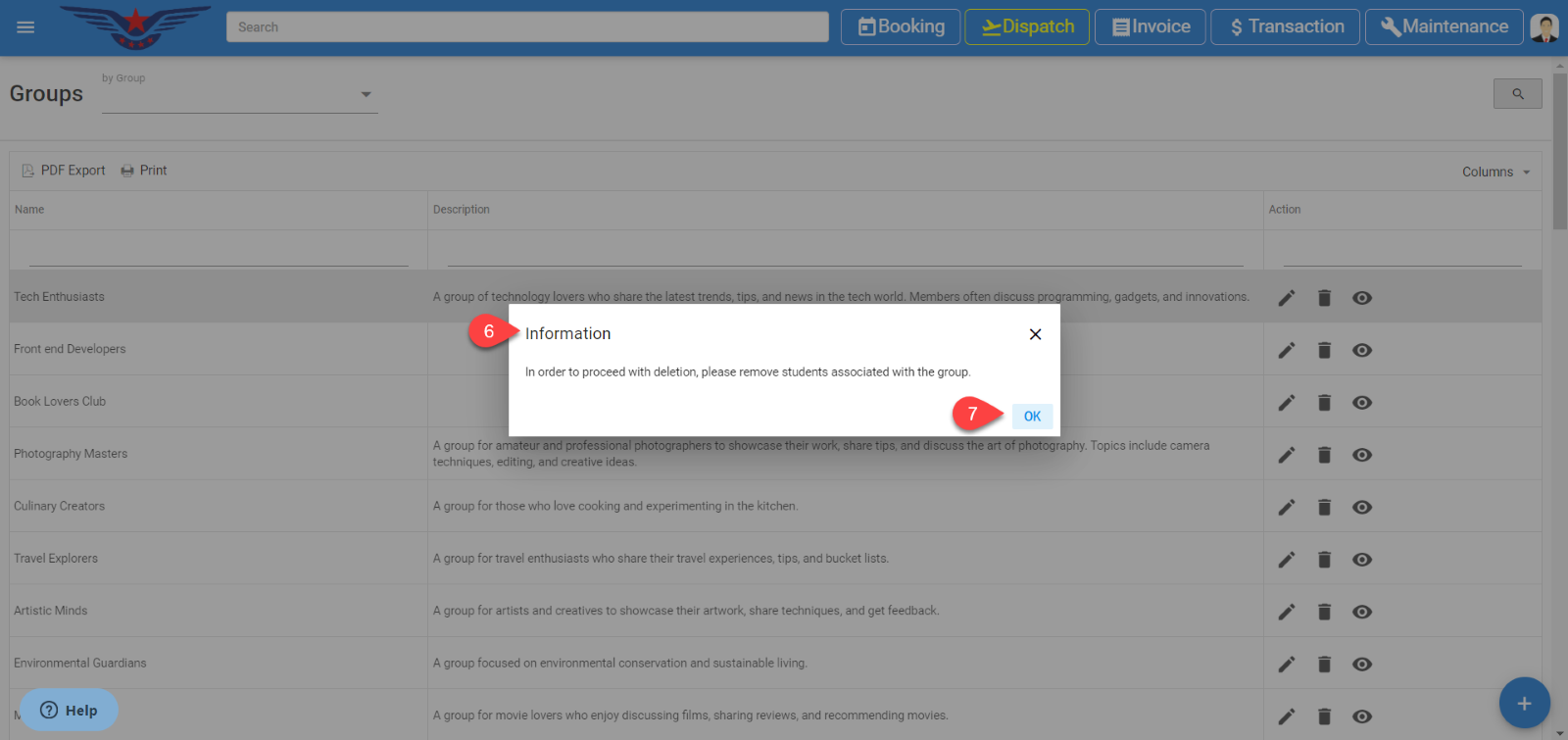 - Click on the delete icon of that group which is connected with the students.