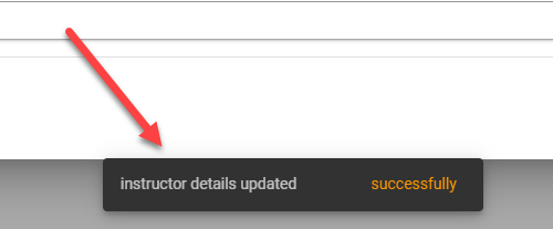 - Instructor details updated successfully message will pop up on the bottom center of the screen.