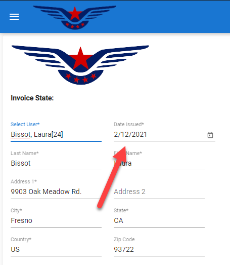 - Date issued is set to the current date and can be changed.