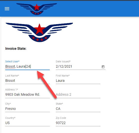 - Select a user from Select User drop down list. All the information will be auto selected and can be edited (fill all the mandatory fields).