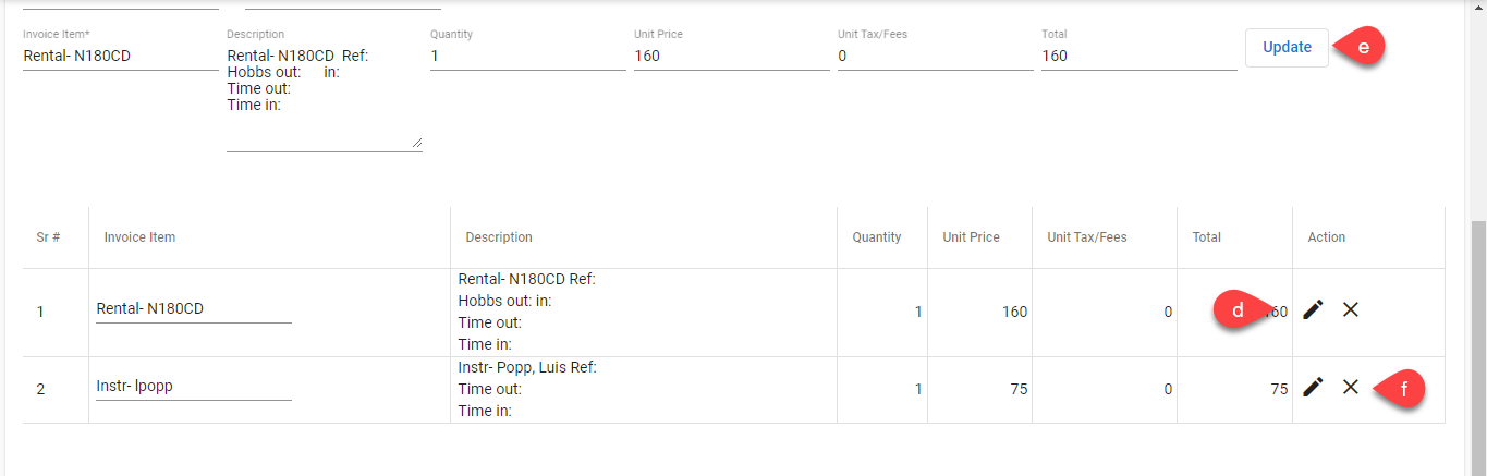- Click on the Pen icon to edit the selected invoice items.