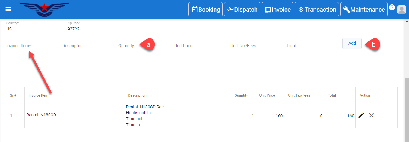 - Repeat step 6 a. And 6 b. to add multiple items to the invoice.