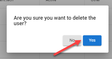 - A message box will pop up confirming user deletion. Click on Yes button.