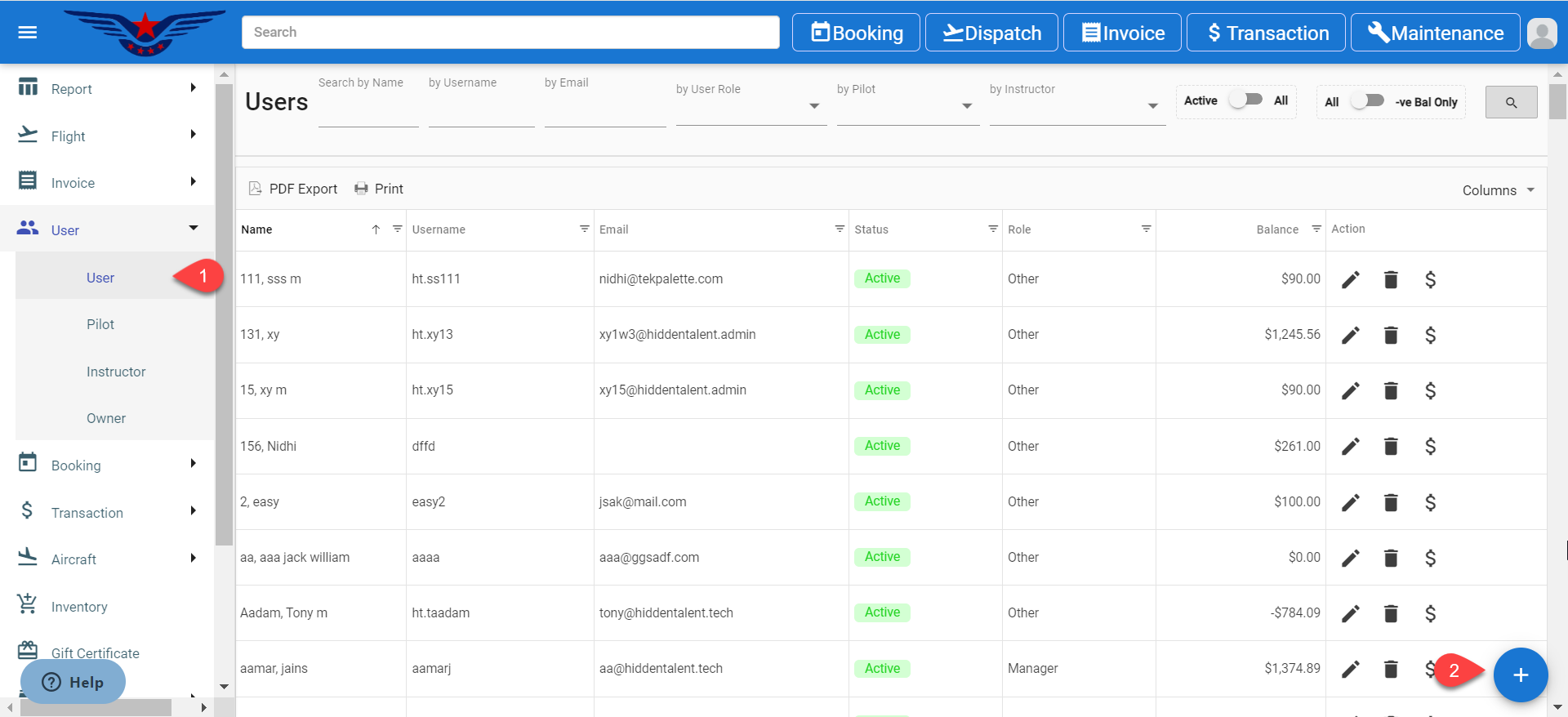 - User list will be displayed on the screen, click on the (+) button on the bottom right corner of the screen.