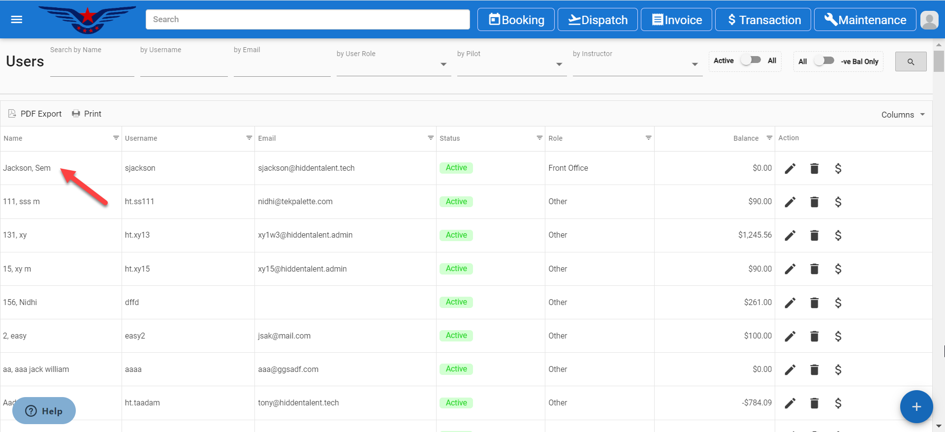 - The newly created user will be displayed on the top of the list automatically.