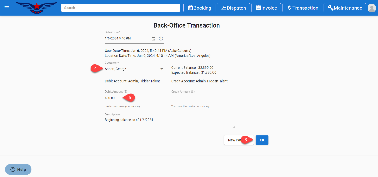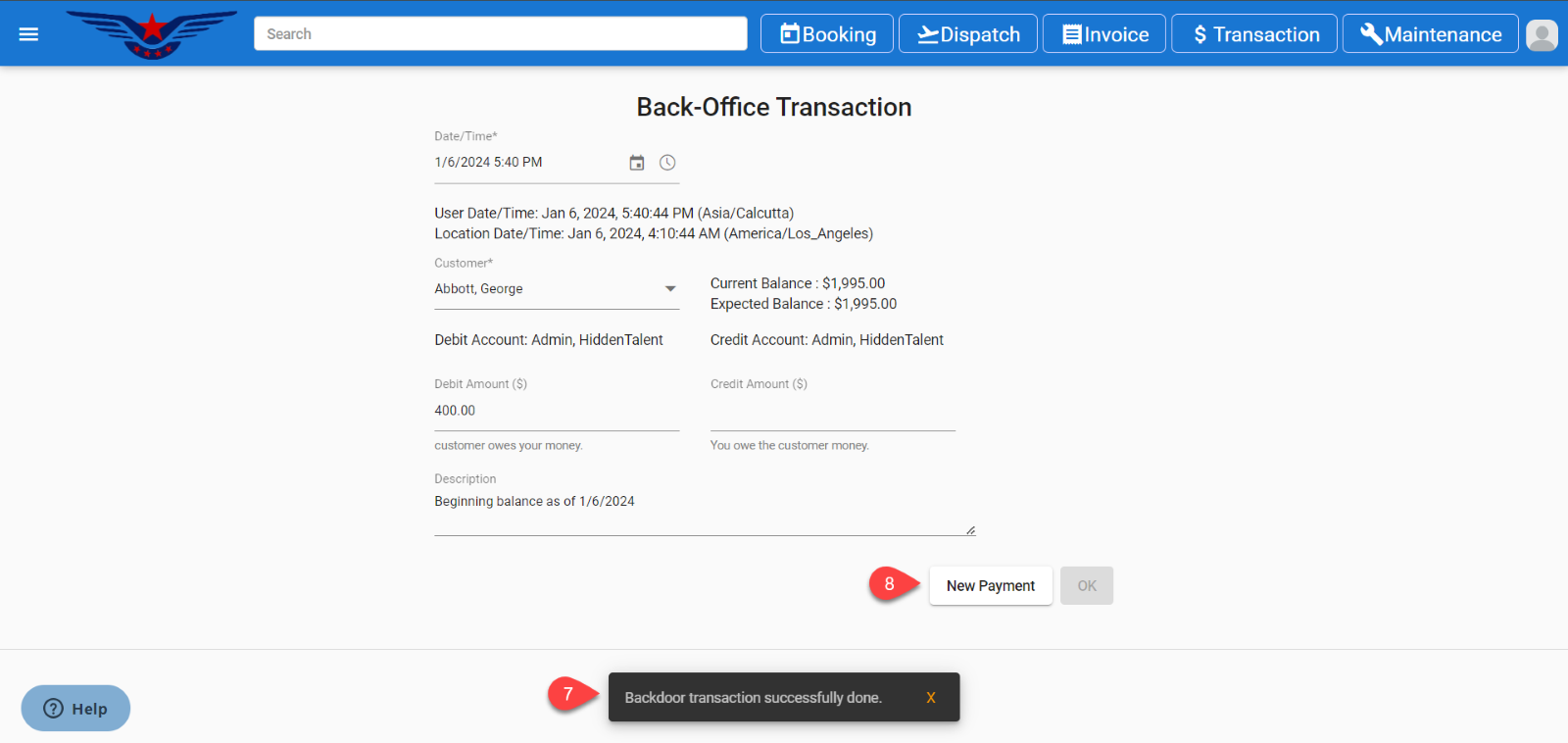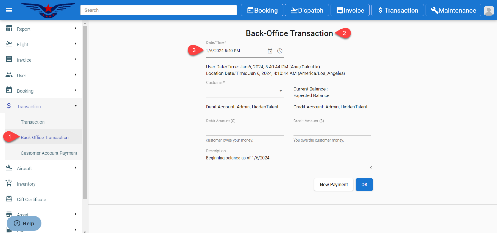 - It will display the Back-Office Transaction page.