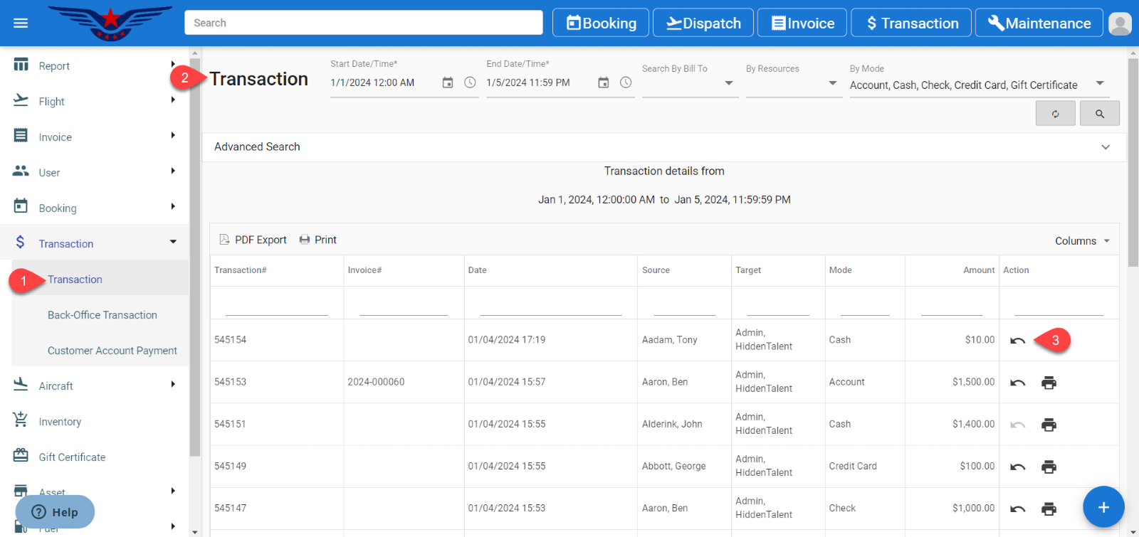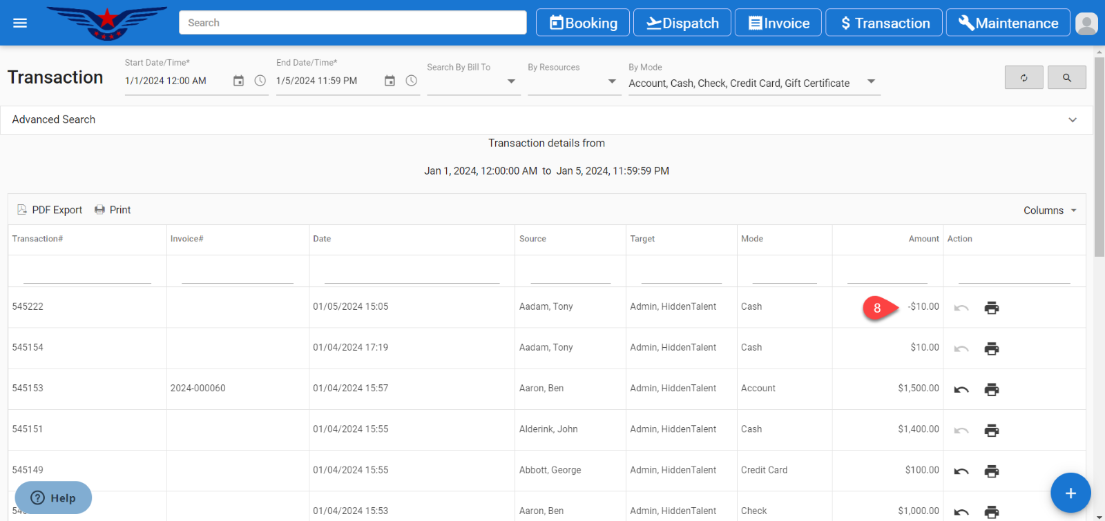 - Transaction list will be displayed.