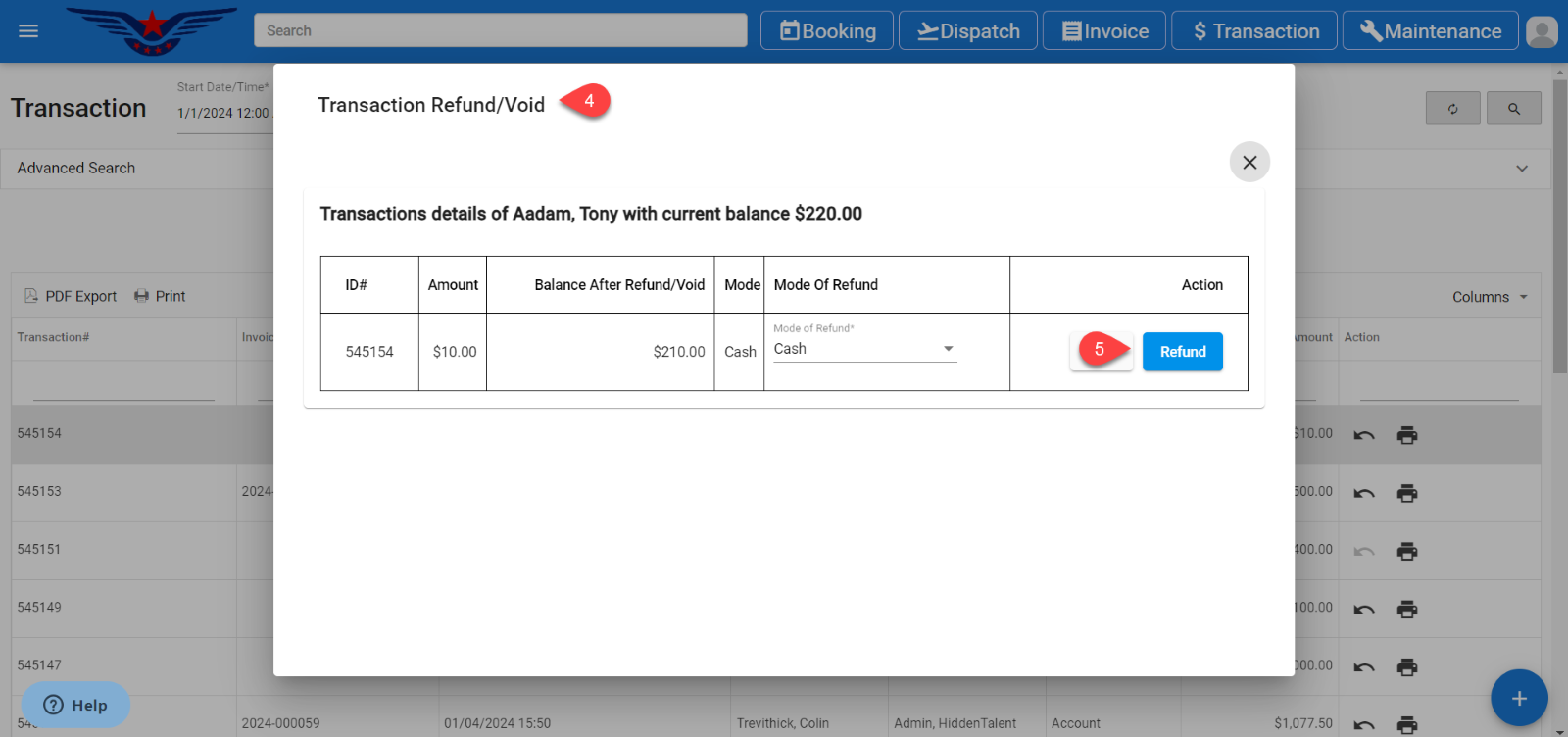 - Click on the Refund button.