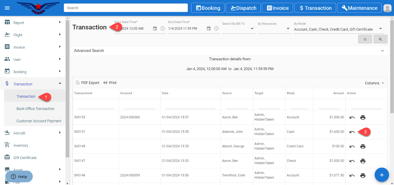 - Transaction list will be displayed.
