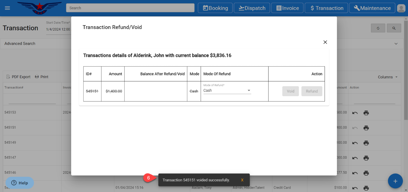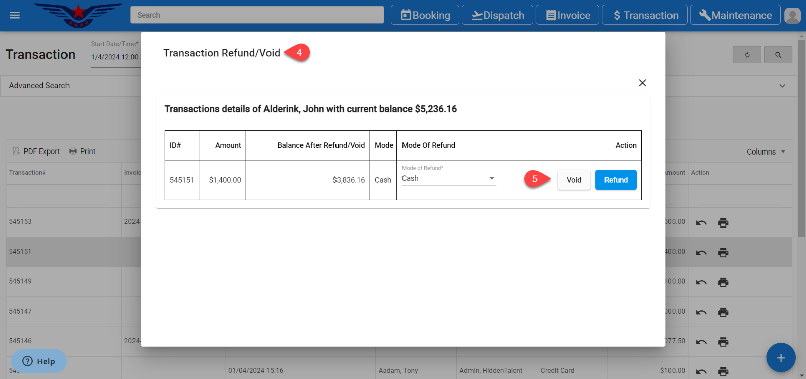 - It will display Transaction Refund/ Void popup on the screen.