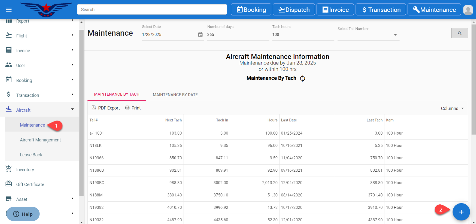 - Maintenance Report will be displayed, click on the ( + ) button on the bottom right corner.