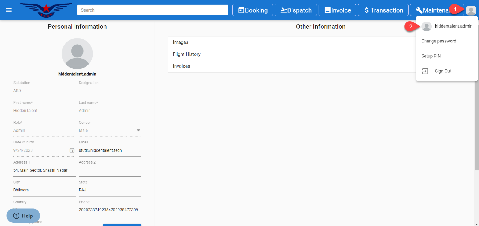 Personal Data page will open. Click on the Camera icon to update User’s Profile image.