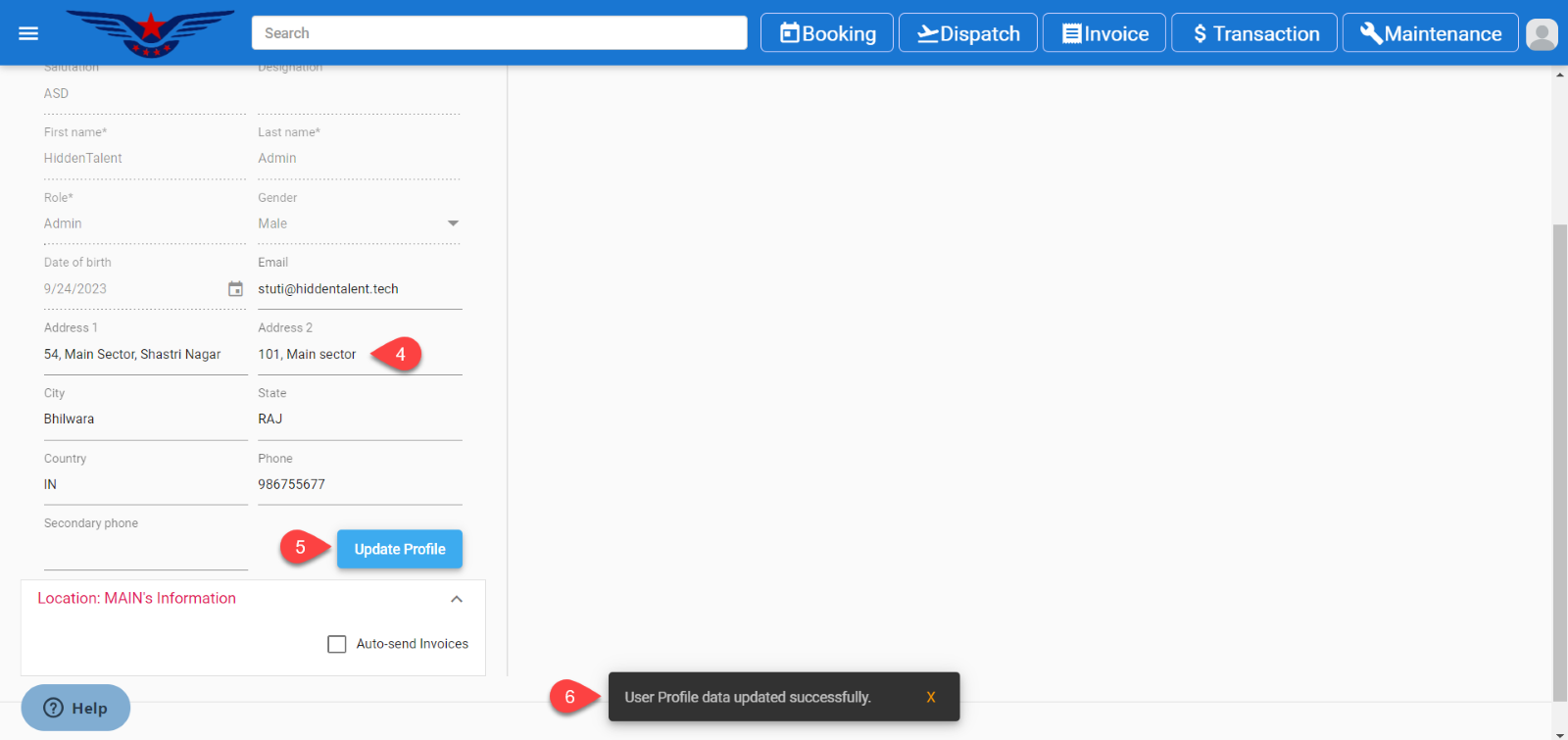 - Email, Address, City, State, Country, Phone Number can be changed.