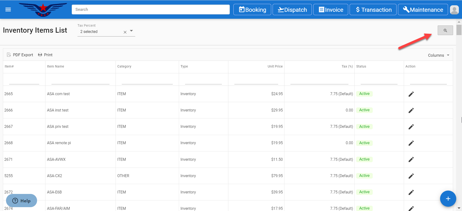 - Inventory Items list will be displayed.