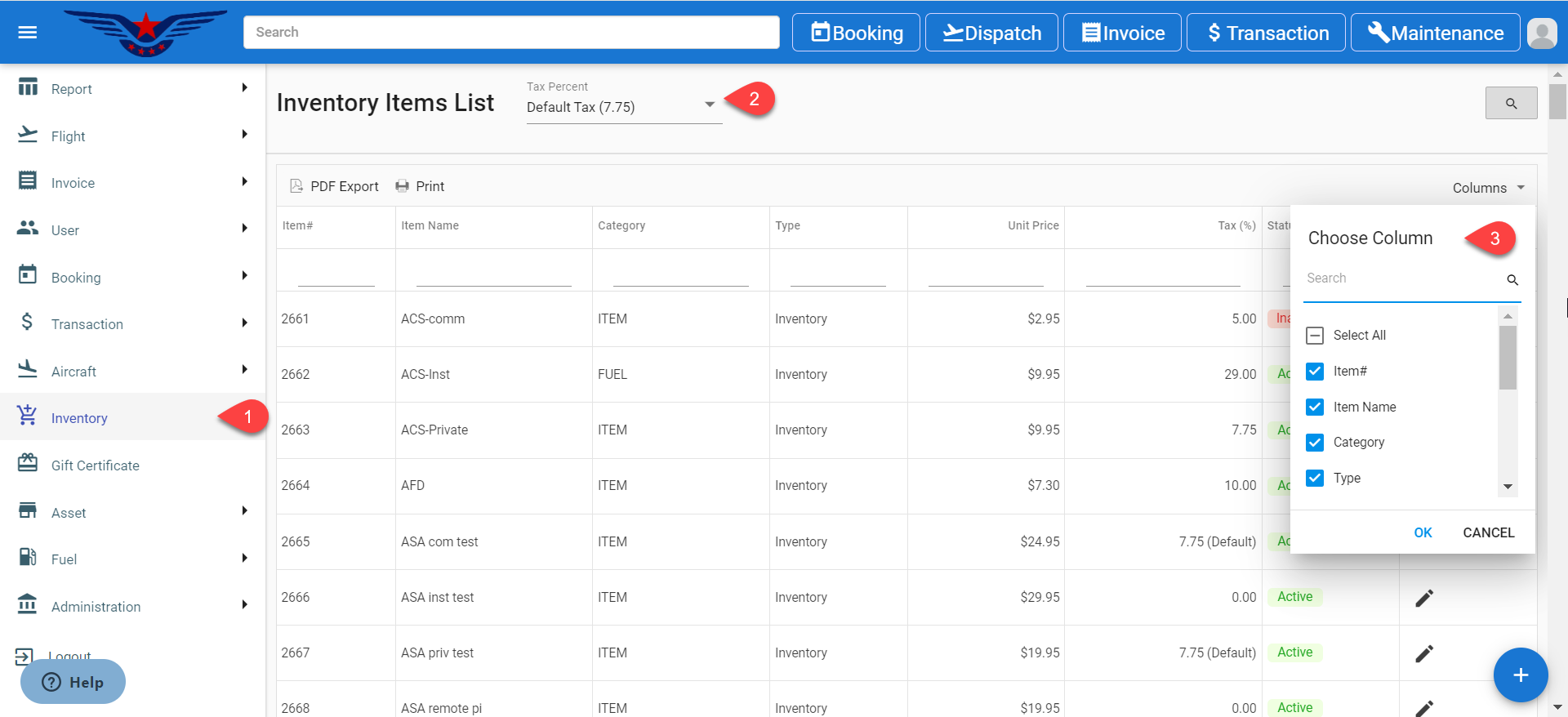 - Search the inventory list by Tax type, click on the search icon.