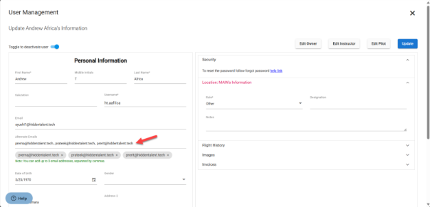 a) If the auto email invoice icon is enabled, the system will automatically send generated invoices to the user's registered email address, as well as to all email addresses listed in the alternate email field associated with that user's information.