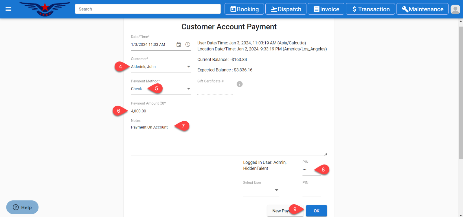 - Customer Account Payment Page will be displayed.