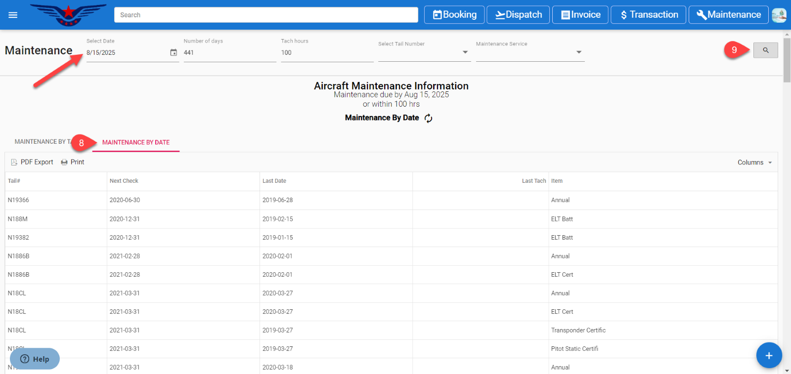 - Click on Maintenance By Date tab. It will display the Maintenance Report according to the provided date.