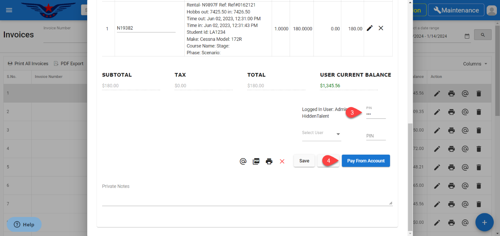 - Invoice popup of that respective user will be displayed. Enter the PIN.