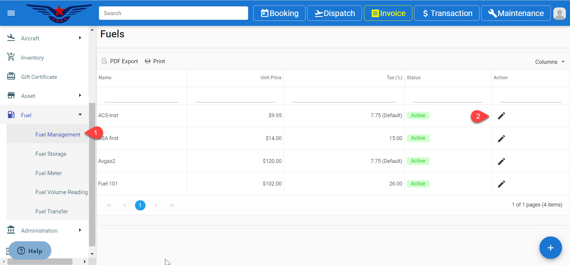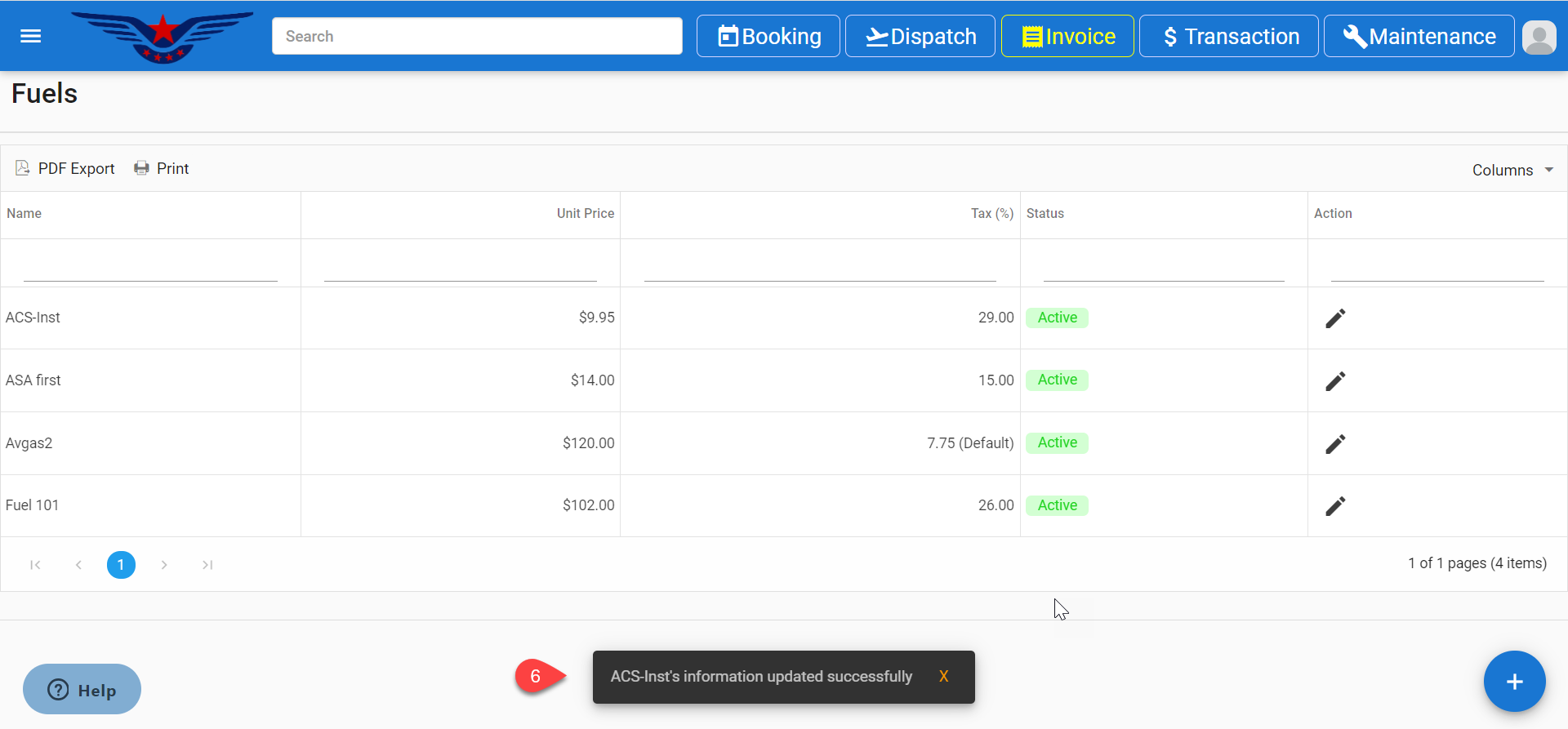 - Fuel List will be display on the screen, click on the Pencil icon under the action column of the list.
