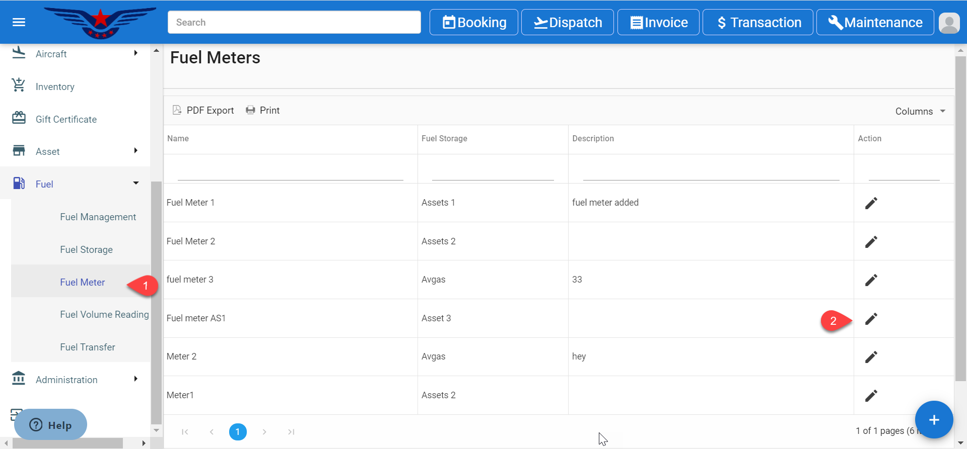 - Fuel Meter List will be display on the screen, click on the Pencil icon under the action column of the list.